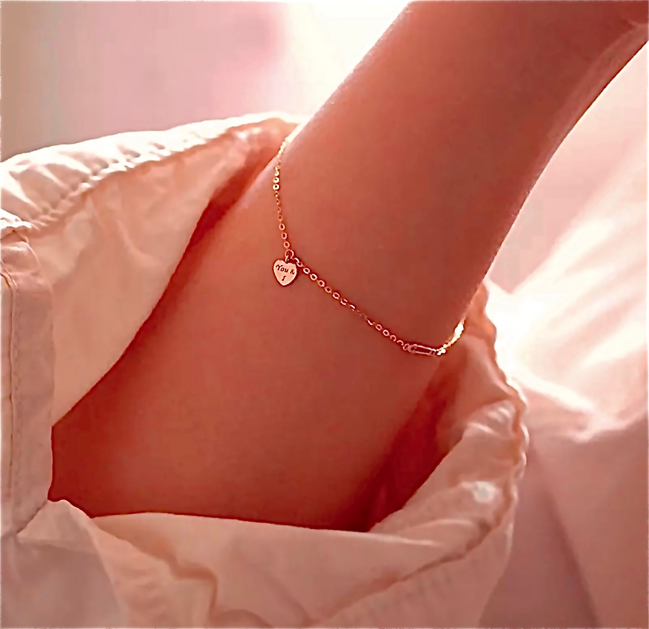 Elegant Dainty Love You & I Heart Bracelet 14K Gold, 925 Sterling Silver