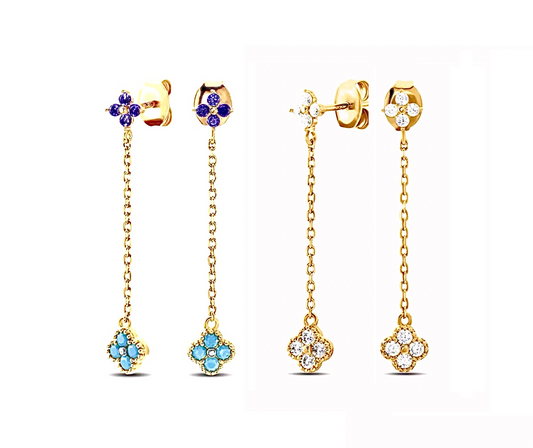 Long Multi-Coloured 4 Leaf Clover Flower Earrings