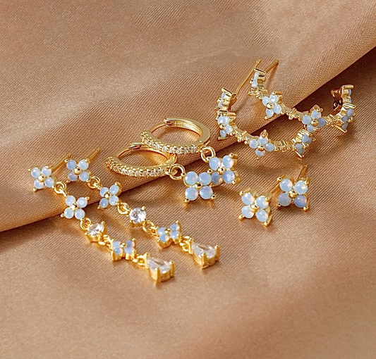 Multi-Coloured 4 Leaf Clover Flower Earrings