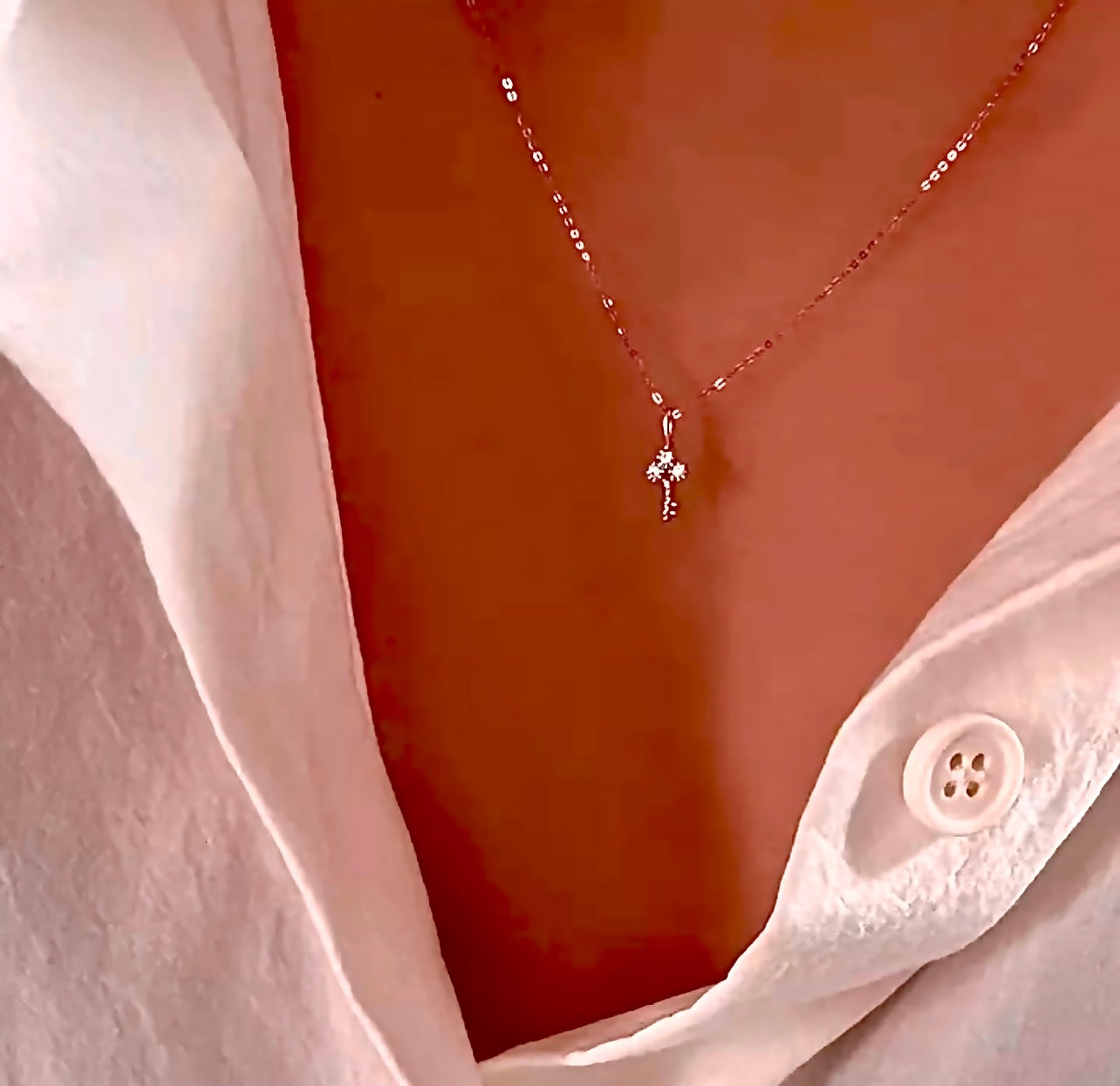 Delicate Clavicle Key Necklace 14K Gold, 925 Sterling Silver